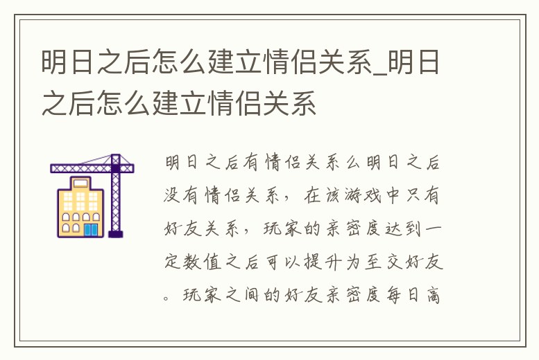 - 明日之后怎么建立情侶關(guān)系_明日之后怎么建立情侶關(guān)系