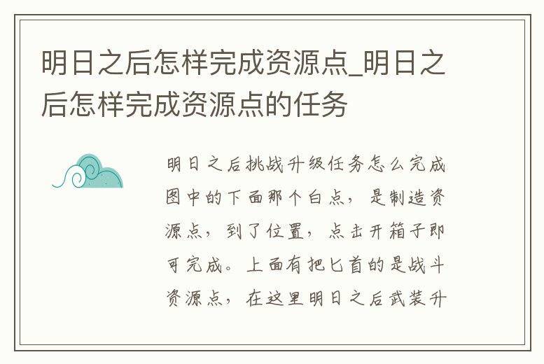 明日之后怎樣完成資源點_明日之后怎樣完成資源點的任務