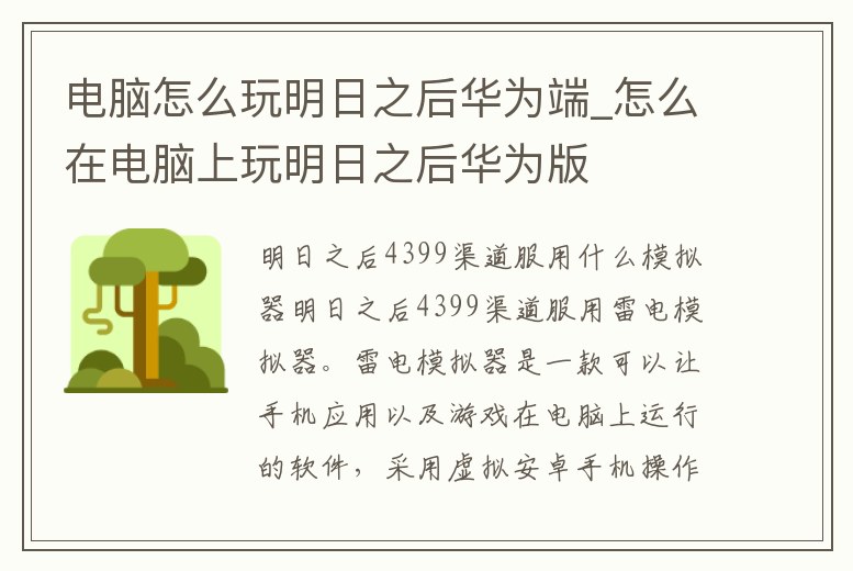 明日之后4399渠道服用雷電模擬器。雷電模擬器是一款可以讓手機應用以及游戲在電腦上運行的軟件,采用虛擬安卓手機操作界面玩家可以通過雷電模擬器在電腦上玩手機游戲。