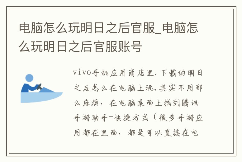 電腦怎么玩明日之后官服_電腦怎么玩明日之后官服賬號