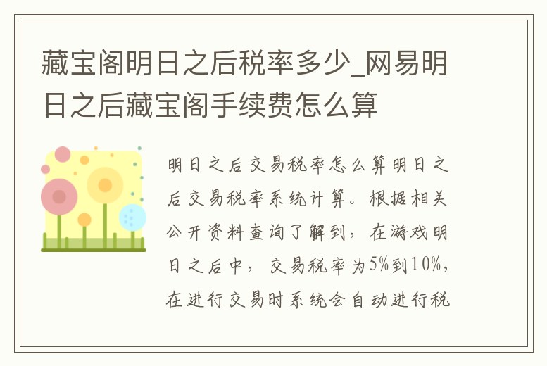 藏寶閣明日之后稅率多少_網(wǎng)易明日之后藏寶閣手續(xù)費怎么算