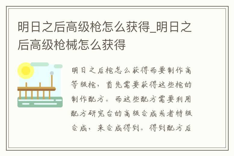 明日之后高級槍怎么獲得_明日之后高級槍械怎么獲得