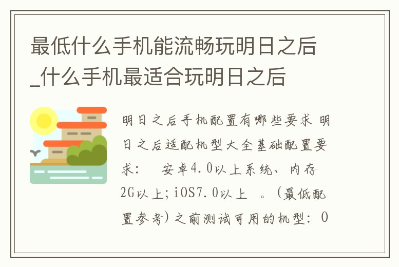 - 最低什么手機(jī)能流暢玩明日之后_什么手機(jī)最適合玩明日之后