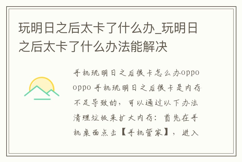 手機玩明日之后很卡怎么辦oppo