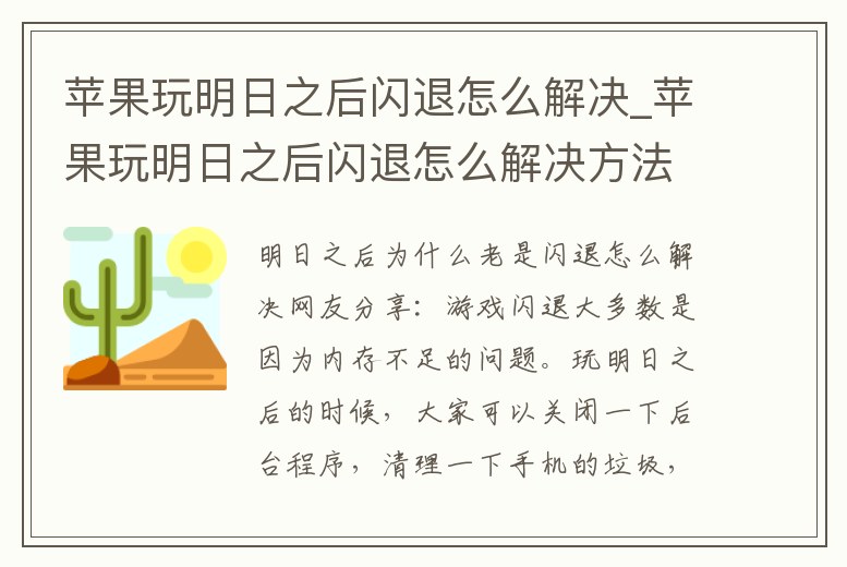 蘋果玩明日之后閃退怎么解決_蘋果玩明日之后閃退怎么解決方法