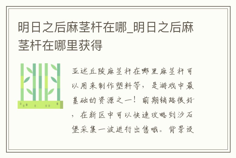 明日之后麻莖桿在哪_明日之后麻莖桿在哪里獲得
