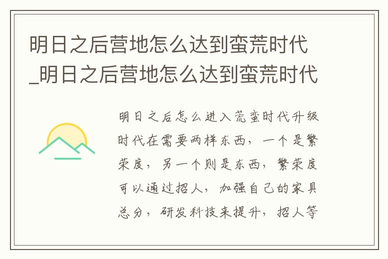 明日之后營地怎么達到蠻荒時代_明日之后營地怎么達到蠻荒時代的