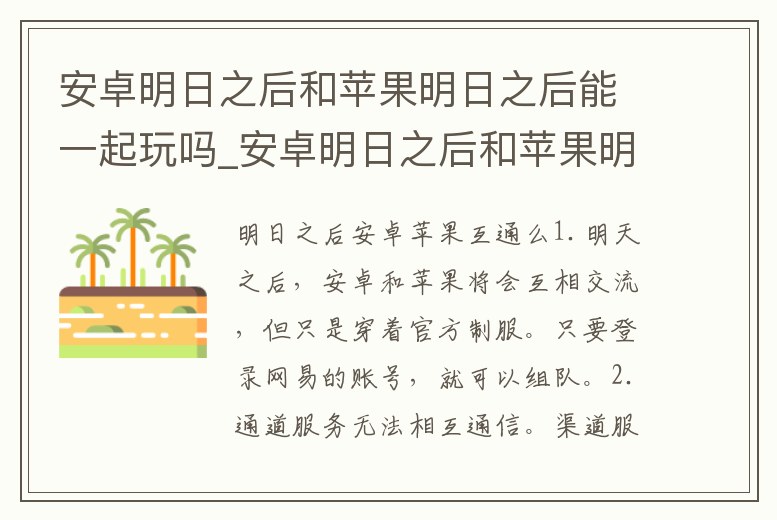安卓明日之后和蘋果明日之后能一起玩嗎_安卓明日之后和蘋果明日之后能一起玩嗎手游