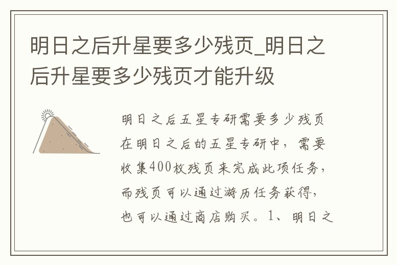 明日之后升星要多少殘頁(yè)_明日之后升星要多少殘頁(yè)才能升級(jí)