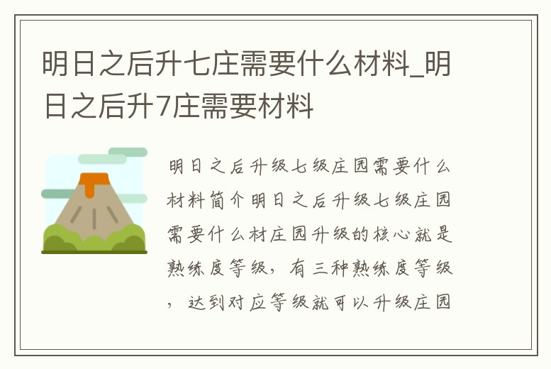 明日之后升七莊需要什么材料_明日之后升7莊需要材料