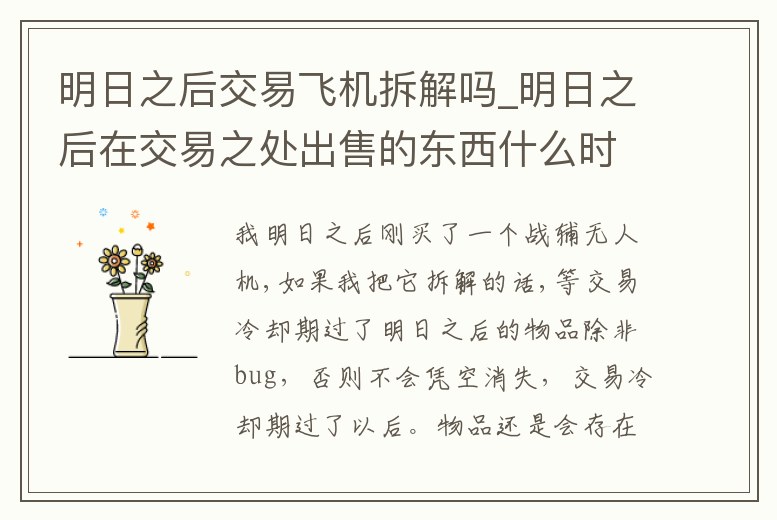 明日之后交易飛機(jī)拆解嗎_明日之后在交易之處出售的東西什么時(shí)候能賣出