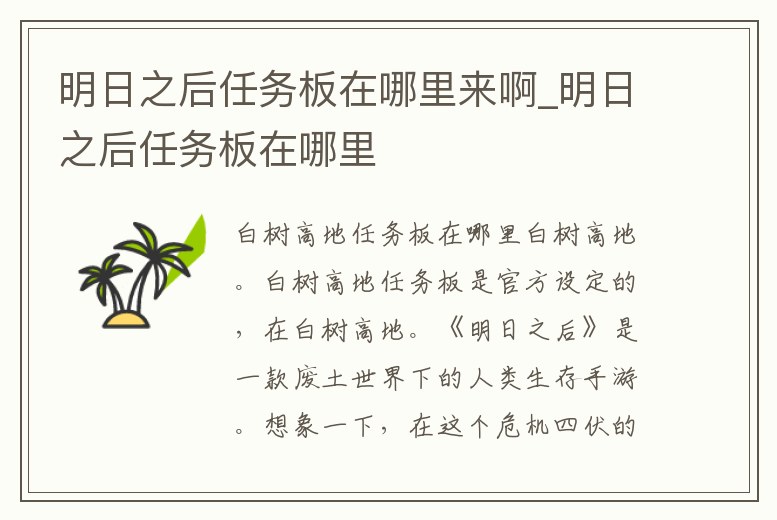 - 明日之后任務(wù)板在哪里來(lái)啊_明日之后任務(wù)板在哪里