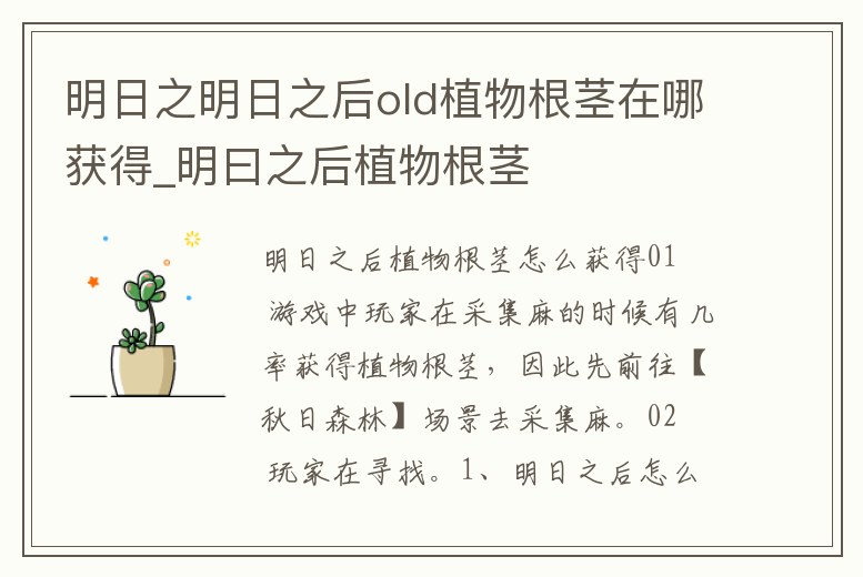 明日之明日之后old植物根莖在哪獲得_明曰之后植物根莖