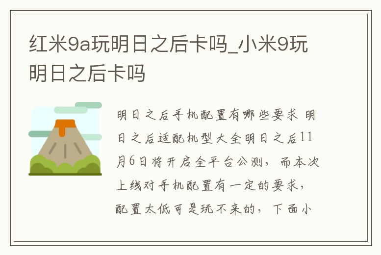 紅米9a玩明日之后卡嗎_小米9玩明日之后卡嗎