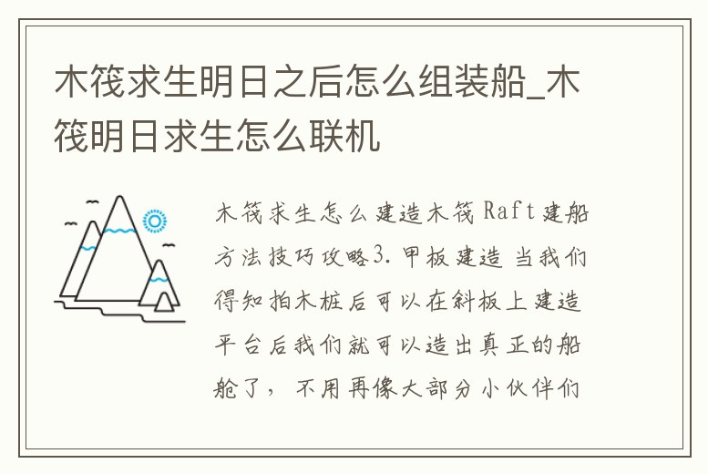 木筏求生明日之后怎么組裝船_木筏明日求生怎么聯(lián)機(jī)