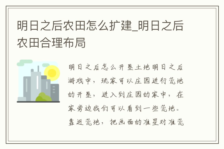 - 明日之后農(nóng)田怎么擴(kuò)建_明日之后農(nóng)田合理布局