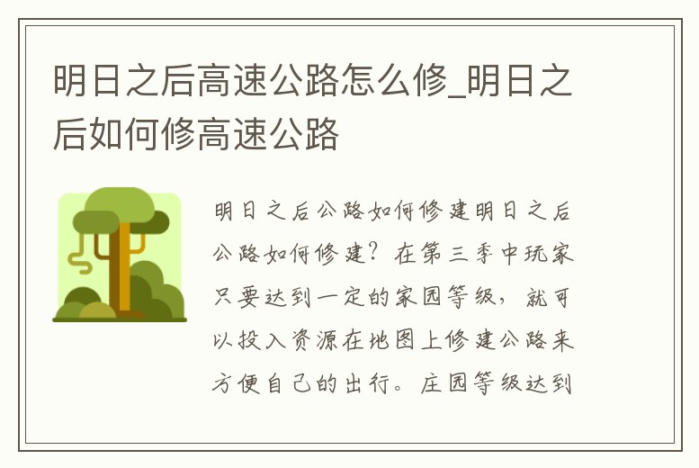 明日之后公路如何修建?在第三季中玩家只要達到一定的家園等級,就可以投入資源在地圖上修建公路來方便自己的出行。莊園等級達到5級后即可開始修建公路了,隨著莊園等級提升,還可以解鎖更多建造方案。高速公路建造后,基建所有人。