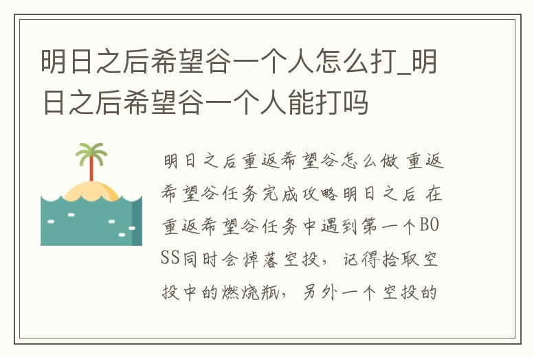 明日之后希望谷一個人怎么打_明日之后希望谷一個人能打嗎