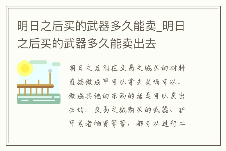 明日之后買的武器多久能賣_明日之后買的武器多久能賣出去