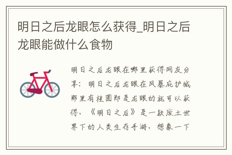 明日之后龍眼怎么獲得_明日之后龍眼能做什么食物