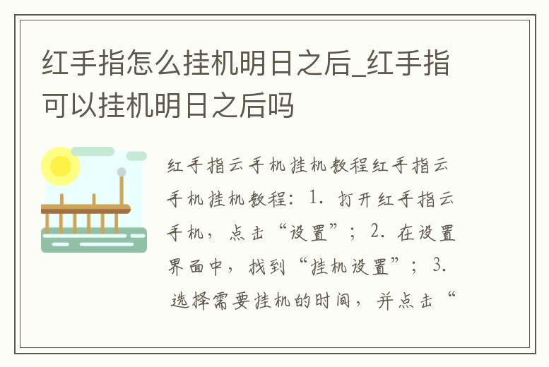 紅手指怎么掛機明日之后_紅手指可以掛機明日之后嗎