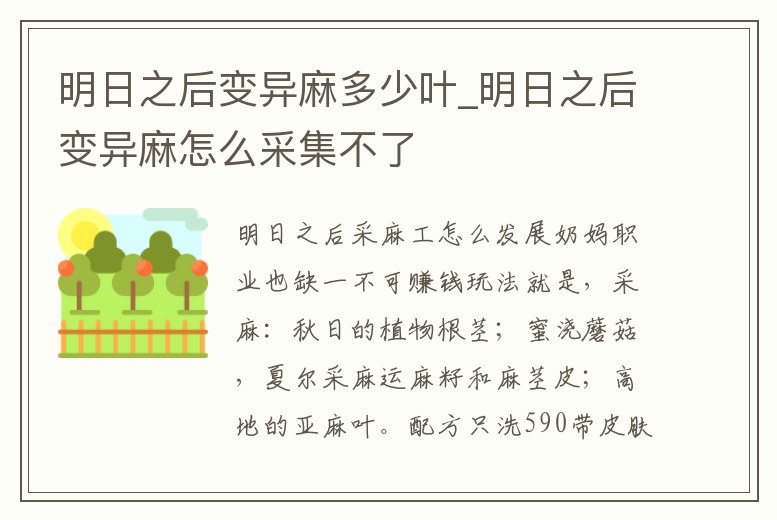 明日之后變異麻多少葉_明日之后變異麻怎么采集不了
