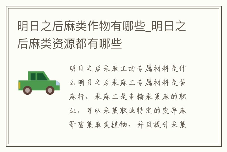 明日之后麻類作物有哪些_明日之后麻類資源都有哪些