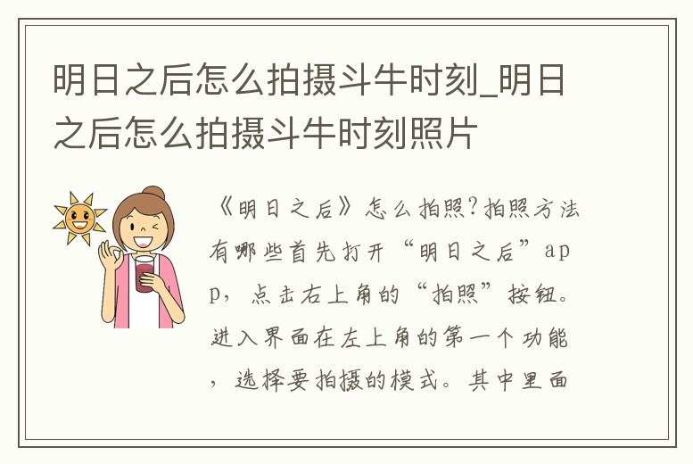 明日之后怎么拍攝斗牛時刻_明日之后怎么拍攝斗牛時刻照片