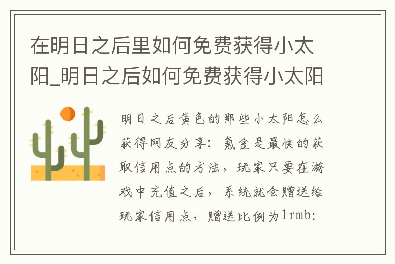 在明日之后里如何免費獲得小太陽_明日之后如何免費獲得小太陽2021
