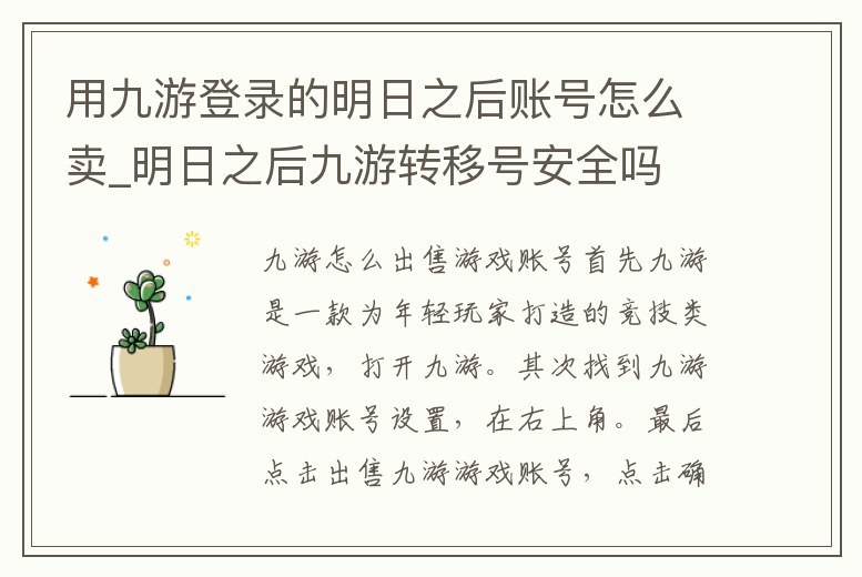 - 用九游登錄的明日之后賬號(hào)怎么賣_明日之后九游轉(zhuǎn)移號(hào)安全嗎