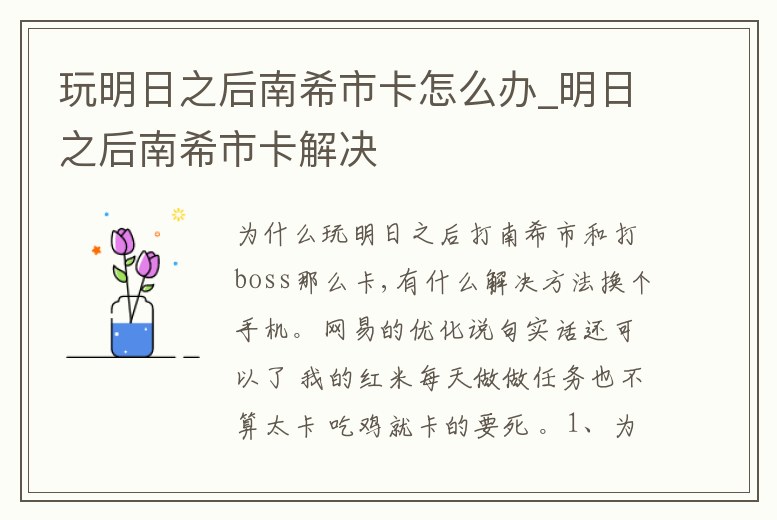 1、為什么明日之后重新下載以后打本和南希變得特別卡