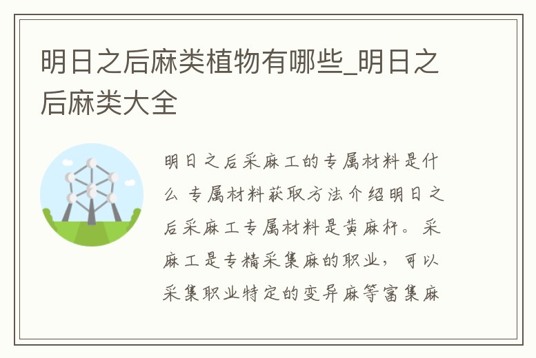 明日之后采麻工專屬材料是黃麻桿。采麻工是專精采集麻的職業,可以采集職業特定的變異麻等富集麻類植物,并且提升采集的速度,職業進階后可以提升采集的暴擊,并且可以獲得專屬材料黃麻桿。富集麻類采集:可以采集變異麻等。