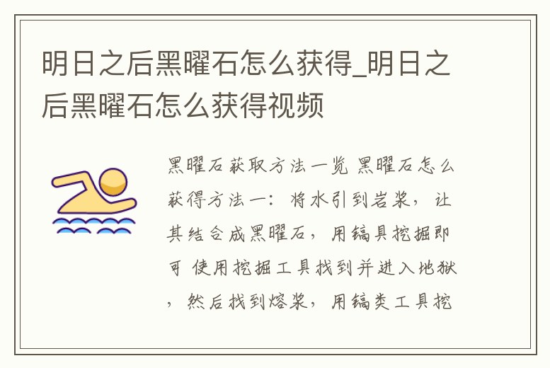 明日之后黑曜石怎么獲得_明日之后黑曜石怎么獲得視頻