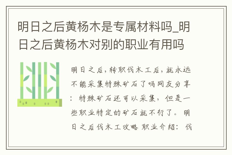 明日之后黃楊木是專屬材料嗎_明日之后黃楊木對別的職業有用嗎