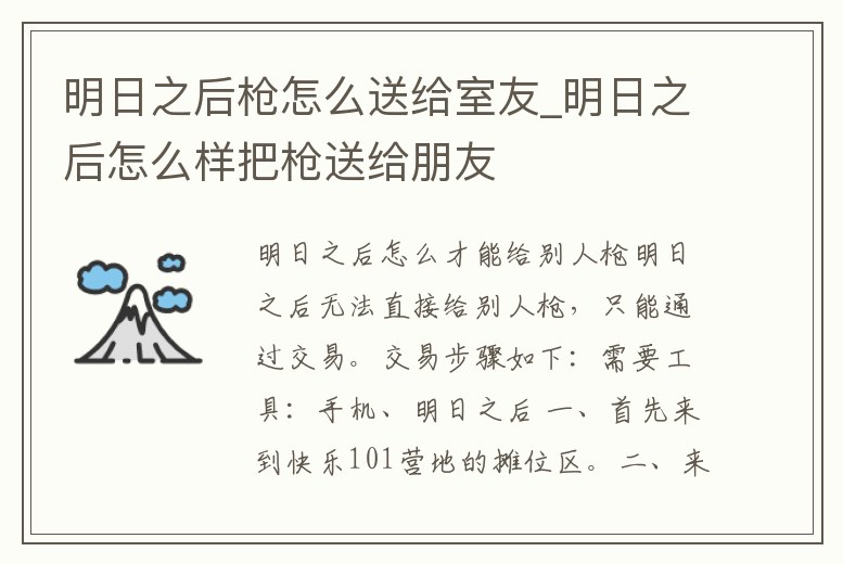 明日之后槍怎么送給室友_明日之后怎么樣把槍送給朋友