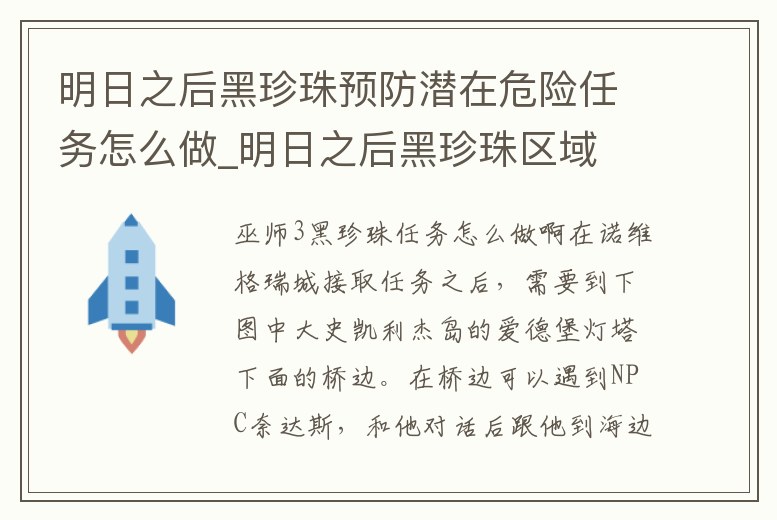 明日之后黑珍珠預防潛在危險任務怎么做_明日之后黑珍珠區域