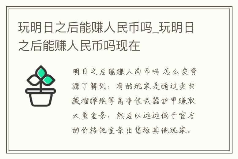 - 玩明日之后能賺人民幣嗎_玩明日之后能賺人民幣嗎現(xiàn)在