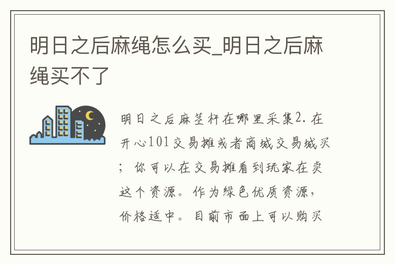 - 明日之后麻繩怎么買_明日之后麻繩買不了
