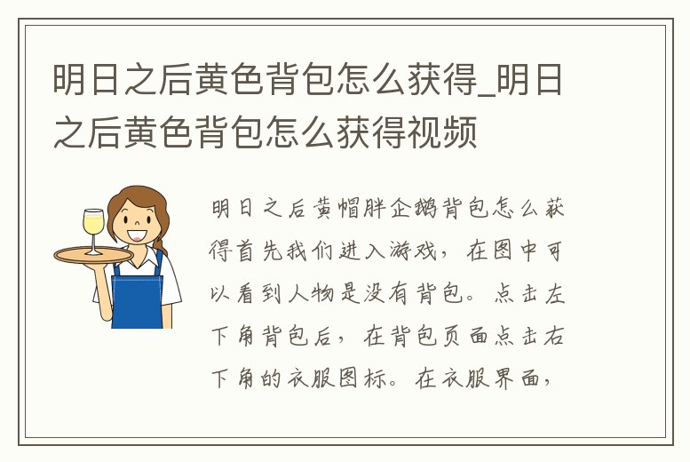 明日之后黃帽胖企鵝背包怎么獲得