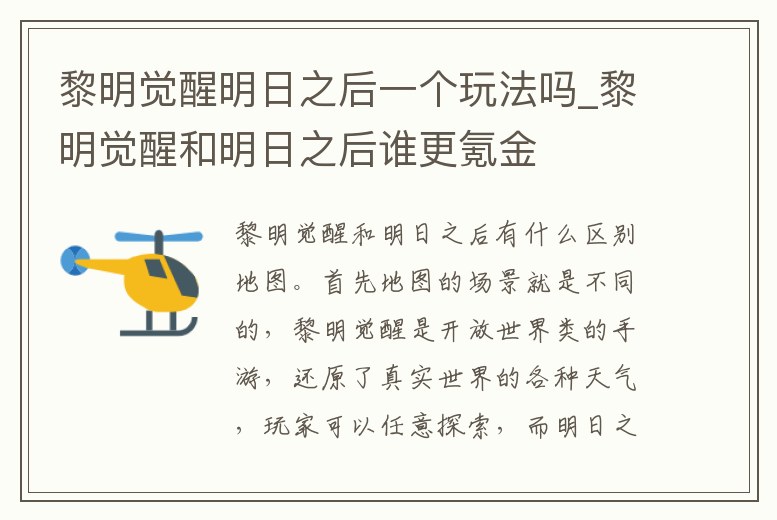 黎明覺醒明日之后一個玩法嗎_黎明覺醒和明日之后誰更氪金