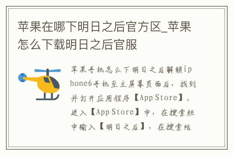 蘋果在哪下明日之后官方區_蘋果怎么下載明日之后官服