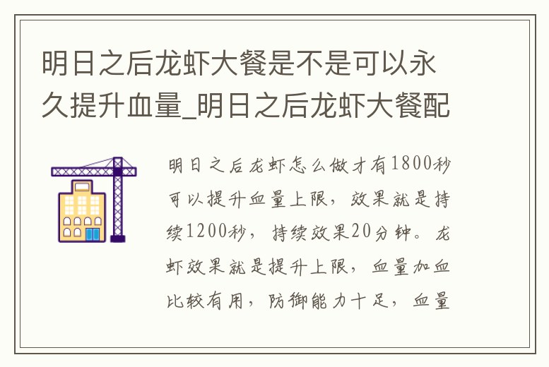 明日之后龍蝦大餐是不是可以永久提升血量_明日之后龍蝦大餐配方