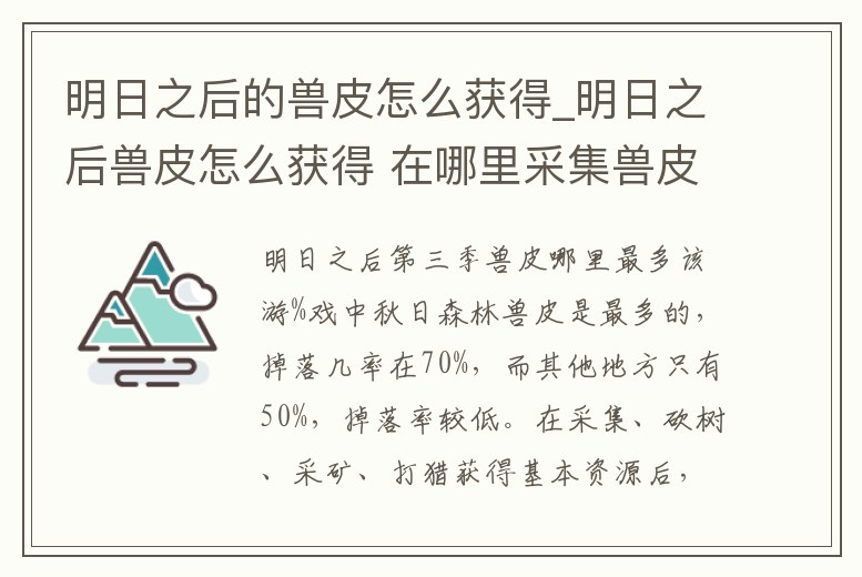 明日之后的獸皮怎么獲得_明日之后獸皮怎么獲得 在哪里采集獸皮