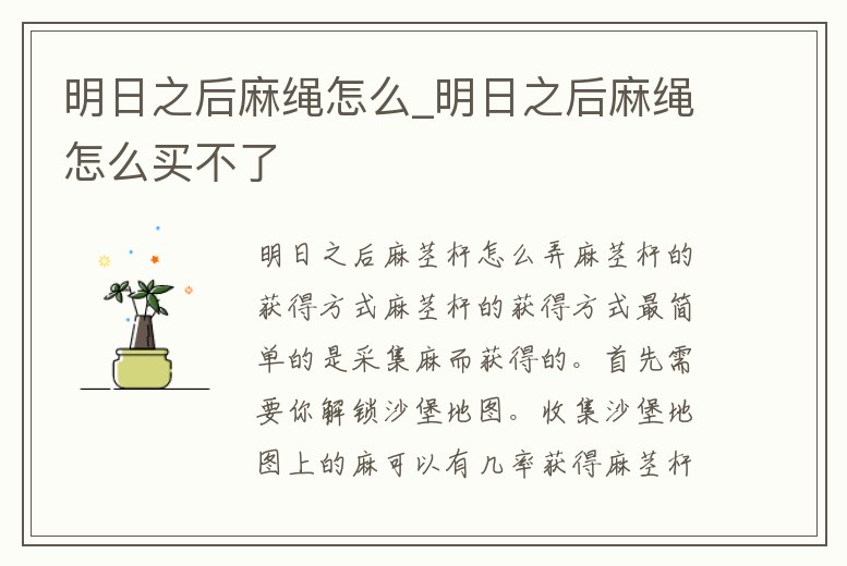 明日之后麻繩怎么_明日之后麻繩怎么買不了