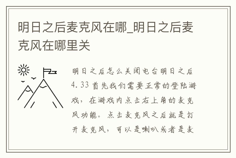 明日之后麥克風在哪_明日之后麥克風在哪里關