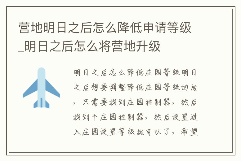 - 營(yíng)地明日之后怎么降低申請(qǐng)等級(jí)_明日之后怎么將營(yíng)地升級(jí)