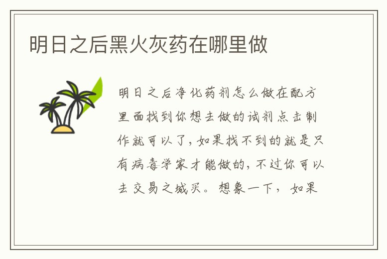 明日之后放感染藥物是初始基本藥物,玩家在野外采集到植物根莖或者npc處購買了都可以制作藥物,所需要的制作等級需要生活技能1級制作熟練度,滿足這個就可以制作藥品了,后續想制作高級藥品需要升級制作等級熟練度。材料采集地圖 防。