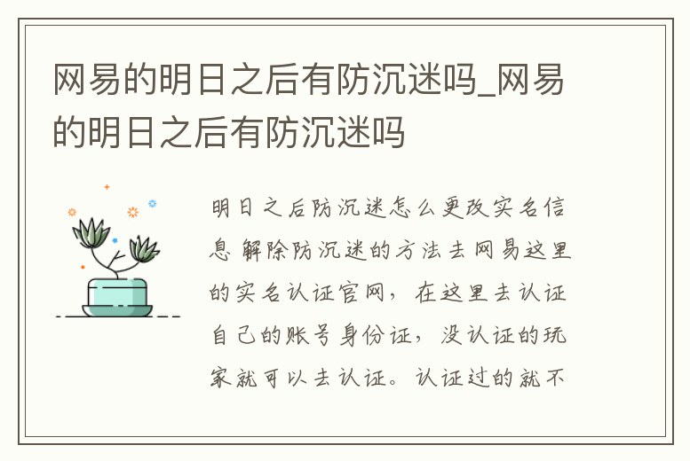 網易的明日之后有防沉迷嗎_網易的明日之后有防沉迷嗎