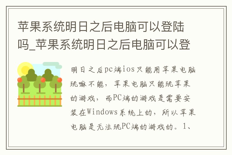 蘋果系統(tǒng)明日之后電腦可以登陸嗎_蘋果系統(tǒng)明日之后電腦可以登陸嗎
