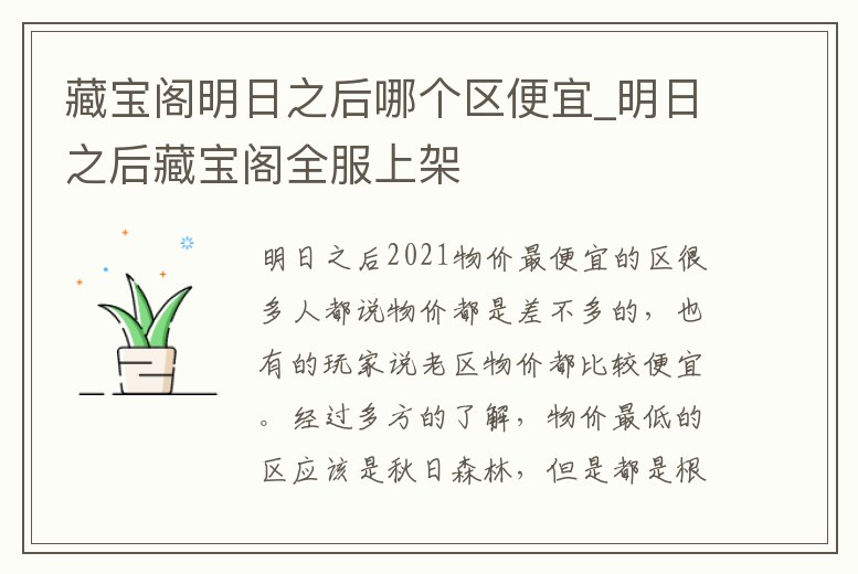 藏寶閣明日之后哪個區(qū)便宜_明日之后藏寶閣全服上架